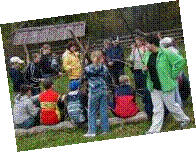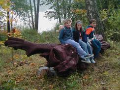 "Szlakiem Mazurskich Legend"Pierwszy Rowerowy RajdPole tekstowe: Wreszcie dojechaliśmy do jeziora Wolisko, gdzie straszy okropny TOPNIK. Ma brzydką minę ale wyciąga do nas chyba przyjazną łapę i pozwala na sobie siedzieć. Niedaleko robimy ognisko i wcinamy kiełbaski. Pożegnawszy TOPNIKA, ciągnąc go za nos —  ruszamy dalej.